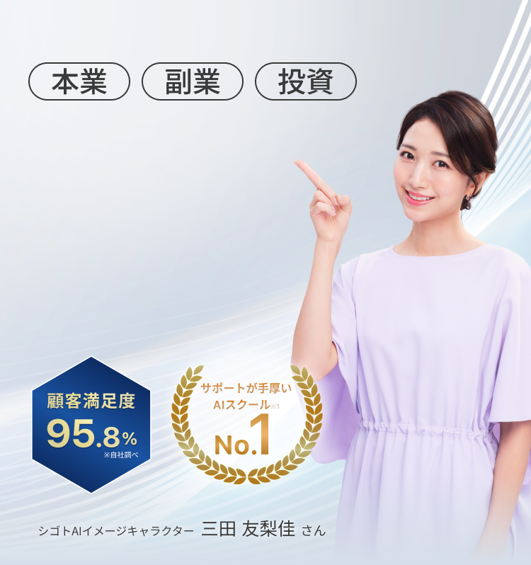 AIスクール「シゴトAI」 をメイン事業としたAIサービスを通じて、人生を経済的に豊かにしていくべく事業を展開しております。